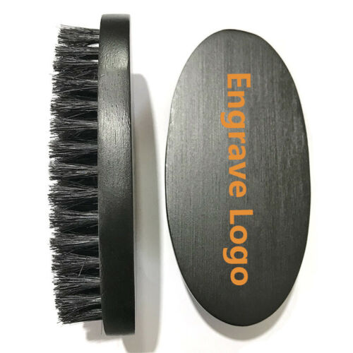 Customize Logo- Black Boar Bristle Brush For Men Beard Care Makeup Grooming Engrave Logo Hair Brush