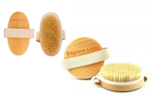 Engrave logo-Wood handle body brush dry brush bath brush wave handle boar bristle brush