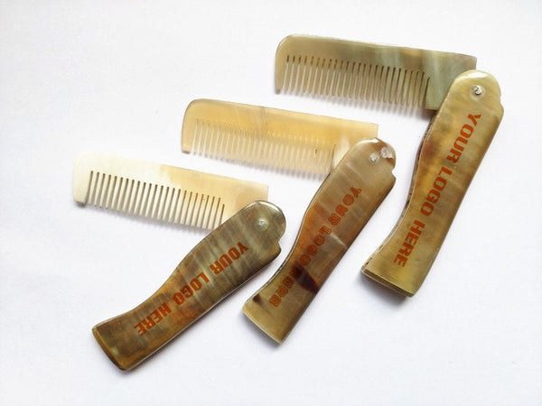 Custmize Your Logo-Handmade Ox Horn Folding Comb Pocket Comb Masssage Hair/Beard Care Comb