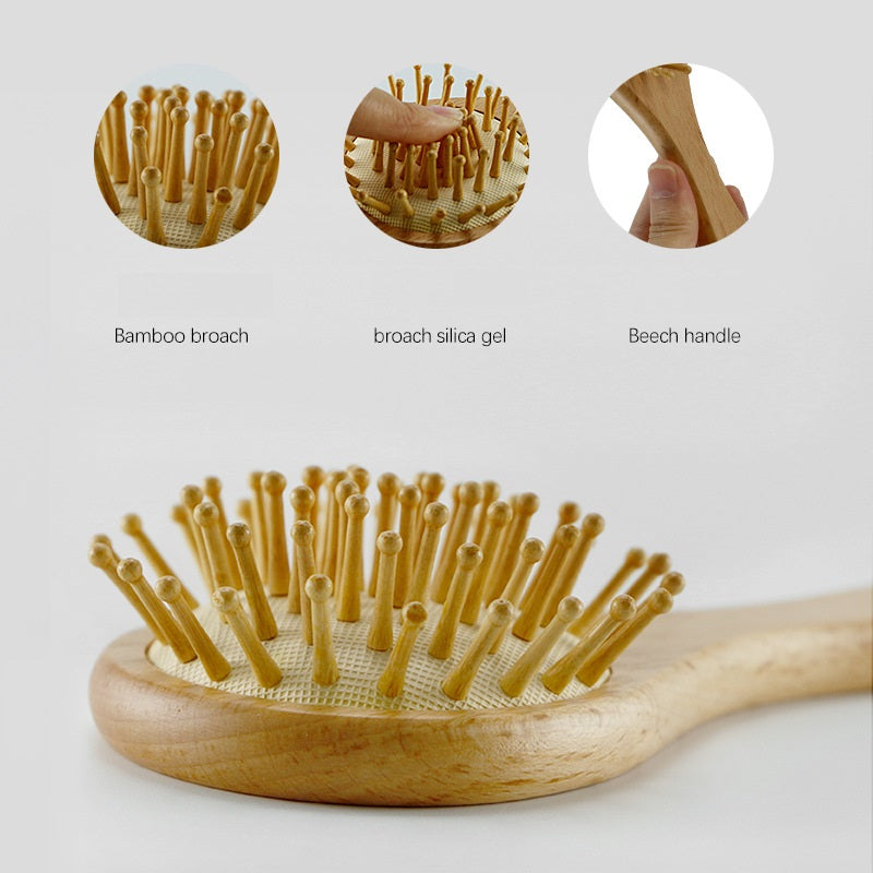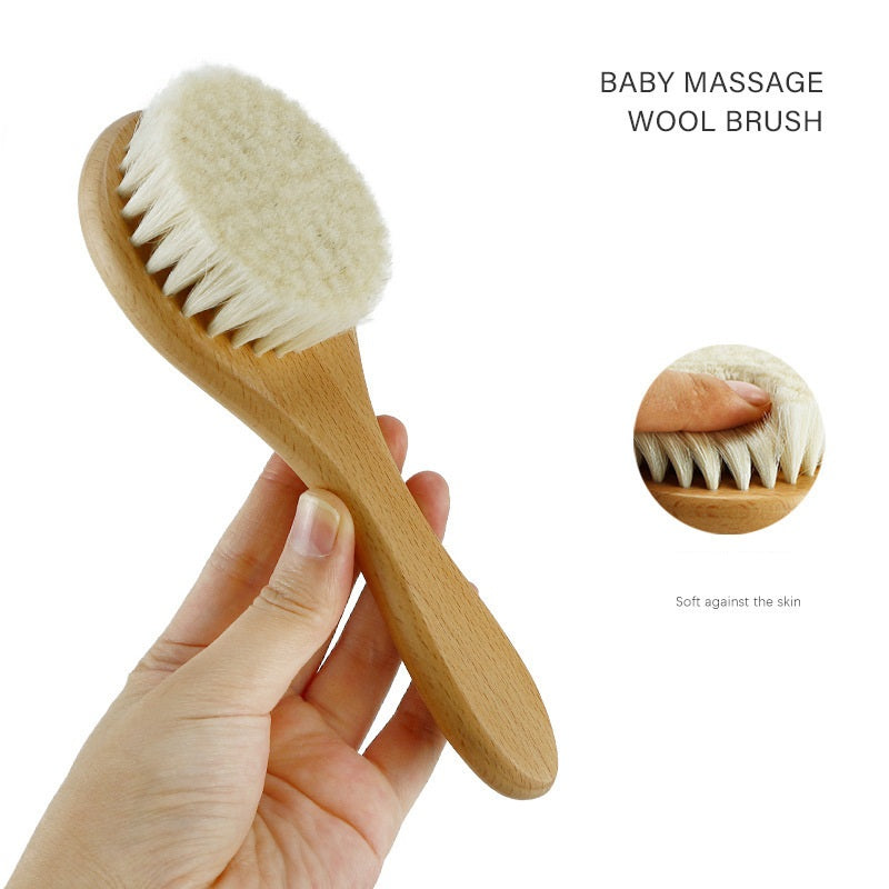Customize Logo-Handmade beech wood baby hair care brush woolen brush wooden comb body brush set