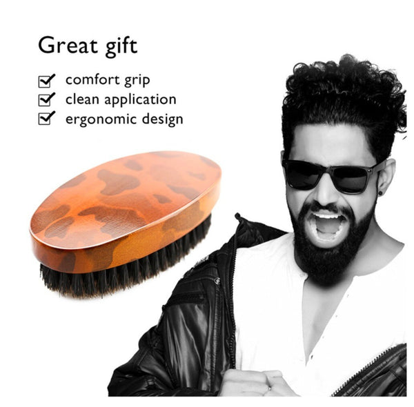 Customize Your Logo-Camouflage Boar Bristle Brush For Men Beard Care Makeup Grooming Engrave Logo