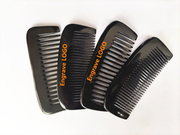 Engrave Logo-Handmade black ox horn combs square shape for hair for men beard care brush