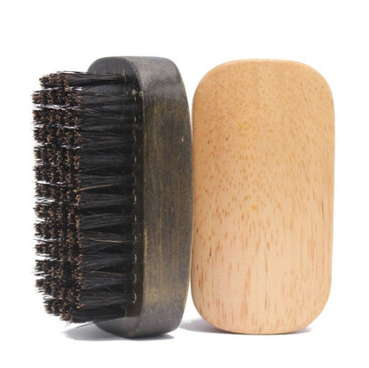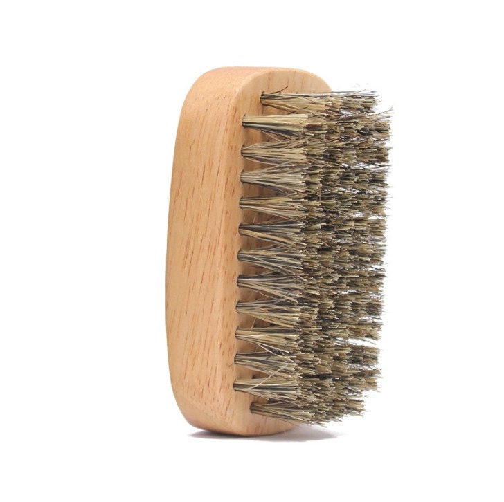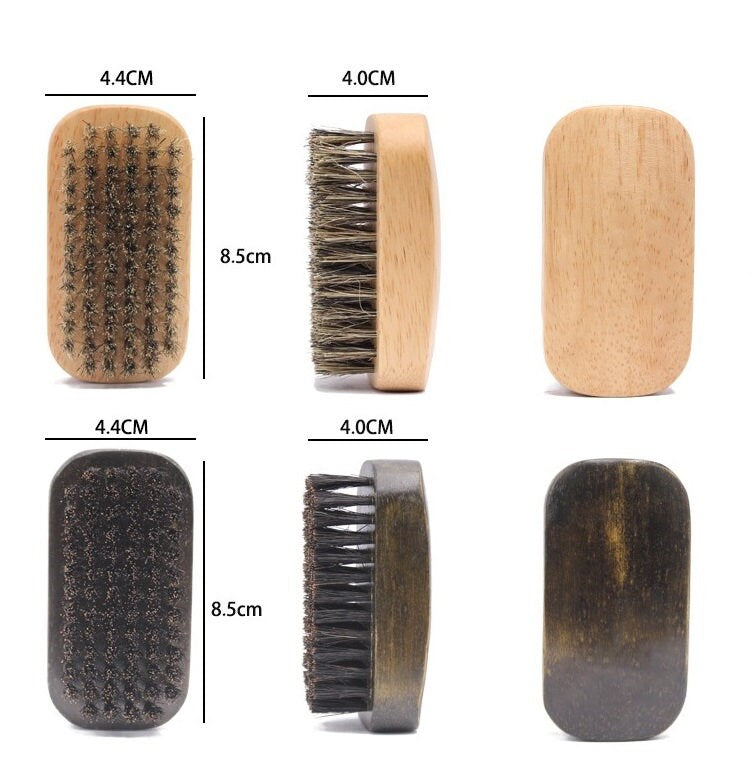 Engrave your logo- Men Wood handle boar bristle beard brush small square brush beard care comb hair brush